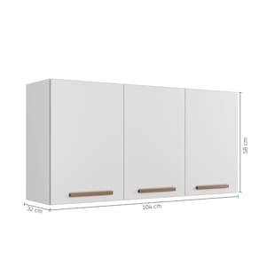 O armário Aéreo Ônix é um produto prático e funcional, perfeito para guardar seus utensílios domésticos, deixando sua cozinha muito mais organizada, proporcionando maior comodidade e praticidade. Possui uma porta com pistão e nicho, bom gosto e qualidade com um toque de clareza.\nEspecifações do Produto Montado: Altura: 58 Cm Largura: 104 Cm Profundidade: 32 Cm Peso: 22,2 Kg\nDetalhes do Produto: Garantia: 3 Meses Material da estrutura: MDP/MDF Número de Portas: 03 Tipo de Porta: Bater Dobradiças Metálicas Possui Prateleiras: Sim 02\nObservações: Não oferecemos serviço de montagem, mas todos os produtos possuem manual de montagem com o passo a passo. Recomendamos contratar um profissional de montagem. Pode existir alguma diferença de tonalidade entre a foto e o produto, devido ao tratamento de imagens e à calibração de cores do monitor.