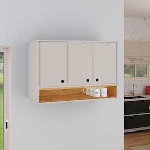 Armário Aéreo Organizador Suspenso Parede Multiuso 3 Portas Cozinha Área de Serviço Jessica - Off White | Cinamomo