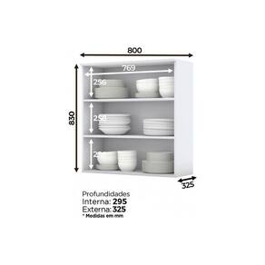 Armário Aéreo p/ Cozinha Americana 2 Portas de Vidro 80cm Branco - Henn