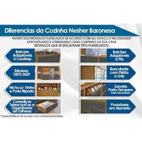 Material de Estrutura - 100% MDF Estilo do Móvel - Estilo Ripado Tipo de Móvel - Armário Aéreo Tipo de Pintura - Pintura em UV (Ultravioleta) Tipo de Acabamento da Pintura - Semi Brilho Tipo de Moldura - Moldura Robusta Vantagens Extras dos Moveis de Cozinha - Adega Material p/ Abertura Portas - Pistão a Gás