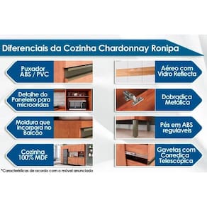 Material de Estrutura - 100% MDF Tipo de Móvel - Armário Triplo Tipo de Pintura - Pintura em UV (Ultravioleta) Tipo de Acabamento da Pintura - Semi Brilho Vantagens Extras dos Moveis de Cozinha - Vantagens dos Modulados
