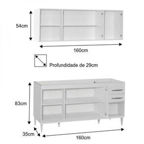 Armário Aéreo Panamá e Balcão Gabinete com Pia Inox 160cm áustria - Lumil Móveis -branco/castanho