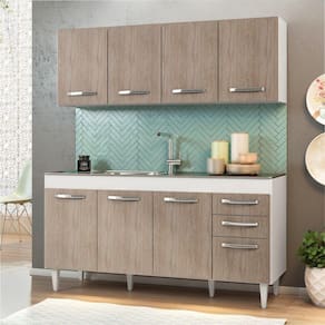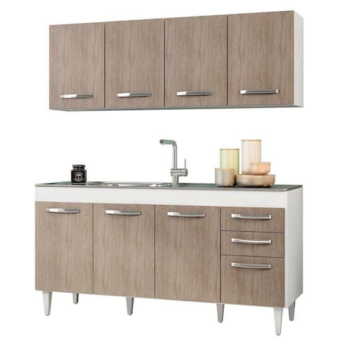 As duas peças compõem o conjunto completo para uma cozinha funcional e moderna, feita para atender às suas necessidades. Ideal para a sua cozinha, esse armário aéreo e balcão gabinete de pia une o útil ao agradável em um único móvel. Guarde suas panelas, louças e até pequenos eletrodomésticos como processadores e espremedores. Tudo vai ficar em segurança e pronto para você usar quando quiser.