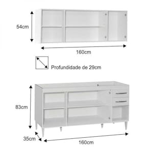 - Balcão: (Largura x Altura x Profundidade) 157 x 83 x 50 cm