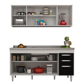 compacto e funcional, assim como o Armário Aéreo Panamá e o Balcão de Pia Áustria, da Lumil Móveis. Com 160cm cada, esse jogo é excelente para organizar seus utensílios, panelas, louças e mantimentos.
