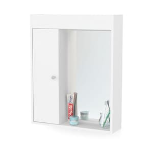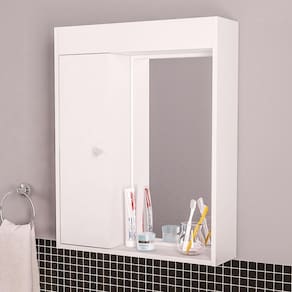MDPArmário aéreo para banheiro com espelho 1 porta 2 prateleiras Branco Politorno