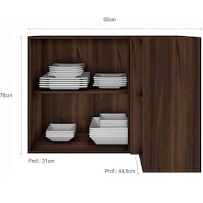 O Armário Aéreo de Canto 2 Portas Unna da Poliman Móveis é um produto elegante ideal para otimizar espaço podendo ser sozinho ou como complemento da Cozinha Modulada Unna. São 2 portas de bater com prateleira interna e 02 nichos decorativos dando um charme a peça, dobradiças reforçadas de 35mm, puxadores modelo retro em polímero com acabamento em alta cobertura para deixar seu móvel ainda mais elegante. Estrutura em MDP Perffect Touch de maior resistência e com proteção Bacterban que inibe a proliferação de fungos e bactérias na superfície do móvel, as portas são almofadadas/molduradas em MDF inspirada nas clássicas cozinhas . Produto ecologicamente correto com embalagens preparadas para evitar s e permitir que o produto chegue em perfeito estado em sua casa. Perfeita combinação com os mais variados ambientes. Qualidade que só a Poliman oferece em seus produtos.