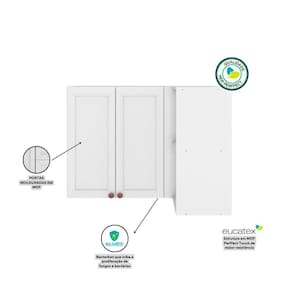 Características: Aéreo canto reto com nichos, portas de bater almofadadas/molduradas em MDF 4mm, dobradiças de 35mm, prateleira interna, puxadores retrô em polímero metalizado.