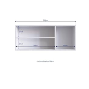 Armário aério Vitória branco, com três portas , possui uma prateleira interna. Ideal para complementar as cozinhas, trazendo praticidade e organização ao ambiente. Com 29 cm de profundidade e 50 cm de altura. Acabamento da Prateleira: Pintura UV Escala de Brilho da Prateleira: Semi-Brilho Acabamento da Porta: Pintura UV Escala de Brilho da Porta: Semi-Brilho Material do Puxador da Porta: Plástico Acompanha Tampo: Não Ambiente Principal: Cozinha codigo_ean: 7909903342404 Complexidade da Montagem: Baixa: pode ser montado por uma pessoa sozinha Cor: Branco Cor do Produto: Branco Cor Interna: Branco Escala de Brilho: Semi-Brilho Espessura do Material da Estrutura: 12 mm Itens Inclusos: 1 Aéreo, Kit Ferragens e Manual de Montagem Manual de Montagem e Instalação: https://product-hub-prd.madeiramadeira.com.br/855253/documents/5d276812-5a09-4819-9bcb-a38ff13536a51373591aereo1200vitoria.pdf Material da Dobradiça/Corrediça da Porta: Alumínio Material da Porta: MDP Material da Prateleira: MDP modular: Não Montagem Flex: Não Necessita Montagem: Sim O Balcão Acompanha Pia: Não Origem do Produto: Nacional Peso: 16 kg Peso Máximo por Prateleira: 5 kg Possui Espelho: Não Possui Possui Pés: Não Possui Portas: Sim Possui Prateleiras: Sim Possui Vidro: Não Produto Montado: Sim Recomendações de Uso, Manutenção e Limpeza: Usar pano seco e macio para limpeza das superfícies Sapatas Niveladoras: Não Sistema de Montagem: Parafusos, cavilhas Suporta Até (kg): 10 kg Tipo de Dobradiça/Corrediça da Porta: Simples Tipo de Puxador da Porta: Externo