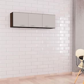 Armário Aéreo para Cozinha 3 Portas 120 cm Chocolate Off White– Poquema