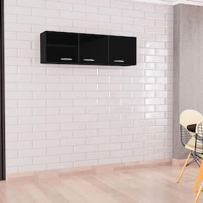 Armário Aéreo para Cozinha 3 Portas 120 cm Preto – Poquema