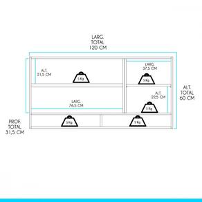 Dimensões do Balcão: Altura: 60 cm Largura: 120 cm Profundidade: 31,5 cm Peso: 24,5 kg