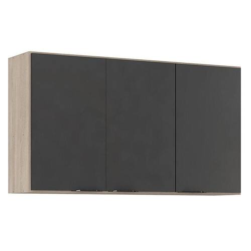 Armário Aéreo para Cozinha Firenze 3 Portas Avena Grafito - Demóbile