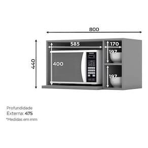 Armário Aéreo para Micro-ondas Belize Cinza Henn