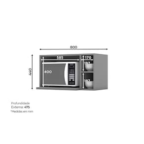 O Armário Microondas possui 44 cm de altura, 80 cm de largura e 47,5 cm de profundidade. Projetado para proporcionar praticidade e funcionalidade ao uso, este produto foi desenvolvido para atender os mais criteriosos usuários aliando funcionalidade com elegância. Um novo conceito inspirado nas clássicas cozinhas estilo americano, seu design contemporâneo embeleza qualquer ambiente. Acabamento da Gaveta: Acabamento da Porta: Acabamento da Prateleira: Pintura Texturizada UV Acabamento dos Pés: Altura do Espelho: Altura do Espelho 01: Altura do Espelho 02: Altura do Espelho 03: Altura do Espelho 04: Altura do Espelho 05: Altura do Espelho 06: Altura dos Pés: Ambiente Principal: Cozinha Complexidade da Montagem: Média: pode ser montado por mais de uma pessoa e/ou necessite de maior conhecimento para montagem Cor: Cinza Cor do Produto: Cinza Cor Flex: Não Cor Interna: Trama Branca Escala de Brilho: Fosco Escala de Brilho da Gaveta: Escala de Brilho da Porta: Escala de Brilho da Prateleira: Fosco Espessura do Espelho: Fita Integrada: Formato do Espelho: Gaveta com Chave: Informações Complementares: Itens Inclusos: 1 Armário, Kit Ferragens e Manual de Montagem Largura do Espelho: Largura do Espelho 01: Largura do Espelho 02: Largura do Espelho 03: Largura do Espelho 04: Largura do Espelho 05: Largura do Espelho 06: Linha ou Coleção: Belize Manual de Especificação Técnica: Manual de Montagem e Instalação: https://cdn2.madeiramadeira.com.br/atributo/m-veis-henn/758876-c557-a-reo-microondas-ess-ncia-americana.pdf Material da Gaveta: Material da Porta: Material da Prateleira: MDF Material do Puxador da Gaveta: Material do Puxador da Porta: Material dos Pés: Material Principal: MDF Montagem Flex: Não possui Necessita Montagem: Sim Origem do Produto: Nacional Pés Reguláveis: Peso: 14 Peso Máximo por Gaveta: Peso Máximo por Prateleira: 8 Possui Espelho: Não Possui Possui Pés: Suspenso Possui Portas: Não Possui Prateleiras: 03 Possui Rodízio: Recomendações de Uso, Manutenção e Limpeza: Para Limpar Seus Móveis, Use Uma Flanela Seca Ou Umedecida. Não Use Produtos Químicos Que Possam Danificar o Produto. Rodízio com Trava: Sapatas Niveladoras: Não Sistema de Montagem: Parafusose Cavilhas. Suporta Até (kg): 24 Tipo de Corrediça da Gaveta: Tipo de Dobradiça/Corrediça da Porta: Tipo de Fixação do Espelho: Tipo de Madeira Maciça: Tipo de Madeira Maciça da Gaveta: Tipo de Madeira Maciça da Porta: Tipo de Madeira Maciça da Prateleira: Tipo de Madeira Maciça do Puxador da Gaveta: Tipo de Madeira Maciça do Puxador da Porta: Tipo de Madeira Maciça dos Pés: Tipo de Porta: Tipo de Puxador da Gaveta: Tipo de Puxador da Porta: