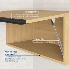 A linha foi pensada para permitir que o cliente a expanda na altura, combinando os módulos basculantes aéreos a cozinha pode chegar até a altura de 2,37 m conferindo um visual imponente para o ambiente.