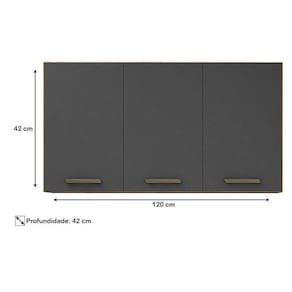 Armário Aéreo São Luís 3 Portas Cinamomo Grafite - Valdemóveis