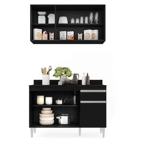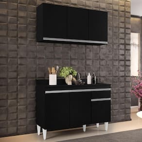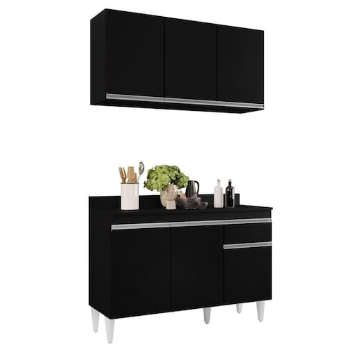 Para uma Cozinha linda e cheia de charme, conheça o Armário Aéreo Virgínia e Balcão para Pia com Tampo 120cm Arizona Preto, da Lumil.