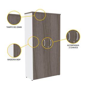 Um prático armário alto com duas portas em madeira na cor escura e laterais brancas, para você ter tudo sempre à mão. Do escritório até aquele lugarzinho na área de serviço para guardar e organizar itens de limpeza e ferramentas, este móvel é ideal para quem busca praticidade e versatilidade e um custo-benefício incrível. Além de espaçoso, este armário é resistente e permite que sua parte mais alta comporte pequenos objetos, como livros, arquivos ou até mesmo peças decorativas, como vasos de plantas, que deixam o ambiente ainda mais estiloso. Essa peça faz parte da Linha P25 da Pandin, uma linha com design clássico e cheia de estilo, com diferentes combinações de cores, perfeita para diversos profissionais, inclusive para quem trabalha em casa.