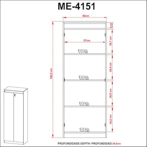 Criativa e imponente, a linha Office da Tecnomobili foi desenvolvida para entregar o que há de mais prático e simples nas rotinas do dia a dia. Com um design surpreendente em suas linhas e proposta minimalista, o armário estante alta na cor amêndoa e preto entrega tudo o que você precisa em uma única peça, unindo estilo e funcionalidade para o seu ambiente de trabalho.CARACTERÍSTICAS TÉCNICAS:- Armário estante alta para escritório Tecnomobili ME4151;- Possui 2 portas, sendo uma com chave;- 3 prateleiras para organização eficiente de documentos e objetos;- Material em MDP e acabamento em BP;- Produto entregue desmontado;- Acompanha manual de montagem e ferragens;- Peso Suportado: 4 kg por prateleira.DIMENSÕES:Altura: 160,5 cmLargura: 60 cmProfundidade: 36,5 cmPeso: 31,5 kgINFORMAÇÕES ADICIONAIS:- ATENÇÃO: Não realizamos montagem do móvel e não nos responsabilizamos por danos durante o processo. A montagem e instalação são de responsabilidade do comprador. Verifique o produto antes de montá-lo, pois não aceitamos trocas de itens montados ou danificados por montagem.- Imagens Ambientadas: As imagens são meramente ilustrativas e podem mostrar itens que não fazem parte do produto. As cores do produto podem variar conforme o monitor, a iluminação do ambiente ou a percepção visual.- Limpeza: Utilize pano macio e seco ou levemente umedecido com água e sabão neutro. Evite o uso de abrasivos como palha de aço ou objetos cortantes.Garantia: Garantia contra defeitos de fabricação, conforme o Código de Defesa do Consumidor.