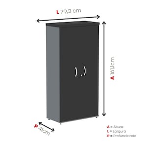 Segurança: Fechadura com chave para maior proteção dos itens armazenados. Acabamento da Porta: BP Acabamento da Prateleira: BP Acabamento dos Pés: Polipropileno Ambiente Principal: Escritório Armário Suspenso: Não codigo_ean: 7900288212658 Complexidade da Montagem: Baixa: pode ser montado por uma pessoa sozinha Cor: Preto/Grafito Cor do Produto: Preto/Grafito Cor Interna: Grafito Escala de Brilho: Semi-Fosco Escala de Brilho da Porta: Semi-Fosco Escala de Brilho da Prateleira: Semi-Fosco Espessura do Tampo: 40 mm Formato do Armário: Retangular Itens Inclusos: 1 Armário e Kit Ferragem Linha ou Coleção: PE40 Manual de Montagem e Instalação: https://product-hub-prd.madeiramadeira.com.br/496552839/documents/30f1b9b8-4b1c-4956-9439-92015b27c3073131204387017550199986424.pdf Marca: Pandin Móveis Material da Porta: MDP Material da Prateleira: MDP Material do Puxador da Porta: MDP Material dos Pés: Polipropileno Material Principal: MDP Necessita Montagem: Sim Orientação do Armário: Vertical Origem do Produto: Nacional Pés Reguláveis: Sim Peso: 45,9236 kg Peso Máximo por Prateleira: 15 kg Possui Espelho: Não Possui Mesa Retrátil: Não Possui Pés: 04 Possui Portas: 02 Possui Prateleiras: 03 Quantidade de Armários: 1 Recomendações de Uso, Manutenção e Limpeza: Utilizar um pano levemente umedecido com água, para finalizar utilizar um pano seco. Sapatas Niveladoras: Sim Sistema de Montagem: Parafuso Suporta Até (kg): 60 kg Tamanho do Armário: Alto (Acima de 150cm) Tipo de Armário: Totalmente Fechado Tipo de Dobradiça/Corrediça da Porta: Aço Tipo de Puxador da Porta: Externo Marca: Não Informado