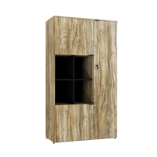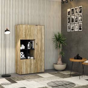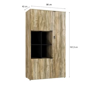 Armário Alto C/nicho E 03 Portas 161,5x90x42cm Wlan90 Carvalho / Preto Carvalho / Preto