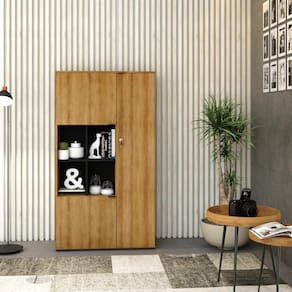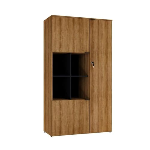 Armário Alto C/nicho E 03 Portas 161,5x90x42cm Wlan90 Lâmina Mel / Preto Lâmina Mel / Preto