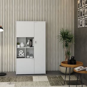 O Armário Alto com Nicho WLAN90 WorkLab é a escolha perfeita para quem busca um móvel versátil e funcional. Combinando três portas e um nicho aberto, ele oferece espaço de armazenamento e exibição em um único design. Com linhas limpas e detalhes elegantes, suas portas possuem dobradiças com amortecedor que garantem um fechamento suave e silencioso, além dos puxadores em alumínio, discretos e funcionais. Seja para armazenar documentos importantes, exibir sua coleção de livros ou manter seus materiais organizados, o Armário WLAN90 WorkLab é a escolha perfeita para escritórios, home offices ou ambientes corporativos. Ele combina funcionalidade com estilo, elevando a estética do seu espaço de trabalho. Acabamento da Porta: BP Acabamento da Prateleira: BP Ambiente Principal: Escritório Complexidade da Montagem: Alta: deve ser montado por um montador especializado Cor: Branco Cor do Produto: Branco Cor Interna: Branco Escala de Brilho: Fosco Escala de Brilho da Porta: Fosco Escala de Brilho da Prateleira: Fosco Itens Inclusos: 1 Armário c/Nicho Manual de Montagem e Instalação: https://cdn2.madeiramadeira.com.br/prd/compace-sala-de-jantar/2364935-1727080686-950106-109044.pdf Material da Porta: MDP Material da Prateleira: MDP Material do Puxador da Porta: Alumínio Material Principal: MDP Necessita Montagem: Sim Origem do Produto: Nacional Peso: 52,1 kg Peso Máximo por Prateleira: 10 kg Possui Espelho: Não Possui Nicho: Sim Possui Pés: Não Possui Portas: 03 Possui Prateleiras: 05 Recomendações de Uso, Manutenção e Limpeza: Para a limpeza, utilize flanela seca ou pano macio levemente umedecido em água. Utilize um pano seco em seguida. Evite contato com produtos químicos (solventes, thinner, acetona, etc) e não utilize nenhum tipo de esponja de aço. Sapatas Niveladoras: Sim Sistema de Montagem: Parafuso, Cavilha, Minifix, Dobradiça, Prego e sapata niveladora Suporta Até (kg): 80 kg Tipo de Dobradiça/Corrediça da Porta: Metálica Tipo de Puxador da Porta: Externo Marca: Metalig