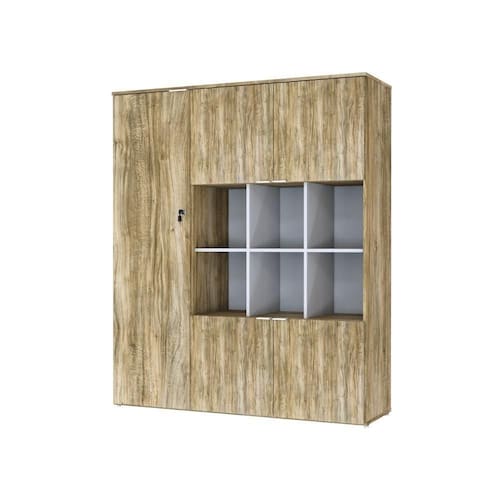Armário Alto C/nichos E 05 Portas 161,5x135x42cm Wlan135 Carvalho / Branco Carvalho / Branco