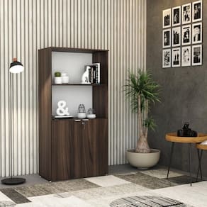 Armário Alto Estante C/02 Portas 161,5x80x42cm Wlae80 Nogal / Branco Nogal / Branco