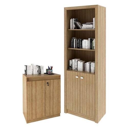 Armário Alto ME4110 e Armário Balcão ME4149 Para Escritório Amêndoa - Tecnomobili