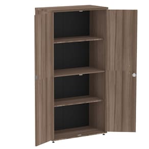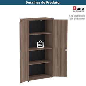 Esse armário de escritório oferece excelente aproveitamento de espaço com três prateleiras internas (sendo duas reguláveis e uma fixa), perfeito para organizar documentos, pastas e materiais diversos. As portas pivotantes sem dobradiças trazem um visual mais limpo, com sistema de articulação superior e inferior, além de fechadura cilíndrica tipo Yale com duas chaves para maior segurança.