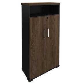 Com o Armário Alto Executiva Marrom/Preto é possível manter os objetos guardados com cuidado e segurança, isso porque esse modelo de armário para escritório 2 portas conta com chaves para o travamento, assim somente você poderá acessá-lo, caso contenham materiais restritos. Além disso, o nicho superior pode dar um toque de charme ao ambiente se disposto nele alguns itens decorativos. Ahh, e tudo isso sem ocupar muito espaço, ou seja, ideal para escritórios pequenos, mas que necessitam de funcionalidade.