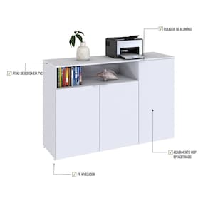 Sobre o ProdutoArmário Aparador C/03 Portas e Nicho 89,5x135x42cm WLAP135 Branco TXDescrição do Produto:O Armário Aparador com 03 Portas e Nicho WorkLab é uma peça de mobiliário que combina beleza e funcionalidade, perfeita para complementar qualquer escritório moderno. Com linhas limpas, este aparador oferece amplo espaço interno, enquanto o nicho superior é ideal para guardar itens decorativos ou de fácil acesso. Suas portas possuem dobradiças com amortecedor que garantem um fechamento suave e silencioso, além dos puxadores em alumínio, discretos e funcionais. O Armário Aparador WLAP135 WorkLab é mais do que um simples móvel, é uma peça que valoriza o ambiente de trabalho com sua presença marcante e prática.A linha WorkLab combina funcionalidade, design contemporâneo e durabilidade para criar um ambiente de trabalho eficiente e inspirador. Com uma ampla variedade de peças versáteis, a WorkLab oferece soluções completas para escritórios, home offices e espaços corporativos. Explore os principais componentes dessa linha e ache a escolha certa para quem busca qualidade, design e funcionalidade em móveis de escritório. Transforme seu espaço de trabalho com a elegância e praticidade da linha WorkLab.Itens Inclusos:1 Armário AparadorDimensões dos Produtos:Armário Aparador C/03 Portas e Nicho 89,5x135x42cm WLAP135 Branco TX: 135 x 42 x 89,5 cmInformações Logísticas (Comp. X Prof. X Alt.):Vol.01: 156 x 48 x 13,5 cm Peso: 43,184 KgPeso Total: 43,184 KgObservações:Não acompanha acessórios decorativos. Imagens meramente ilustrativas.Informações Técnicas / Características: Cor do Produto: Branco TX Cor do Predominante: Branco Marca: Metalig Modelo: WLAP135 Linha: WorkLab Material: Mdp Acabamento: BP Escala de Brilho: Fosco Fita de Borda: Pvc Possui Portas: 3 Tipo de Porta: Bater Tipo da Dobradiça: Metálica C/Amortecedor Possui Gavetas: Não Possui Chave: Não Material do Puxador: Alumínio Possui Prateleiras: 3 Peso Máximo por Prateleira: 10kg Pés Niveladores: Sim Acabamento Estrutura: BP Formato: Retangular Possui Nicho: 1 Suporta Até (kg): 70kg Comprimento: 135cm Profundidade: 42cm Altura: 89,5cm Peso Líq.: 42,125Kg Recomendações de Uso, Manutenção e Limpeza: Para a limpeza, utilize flanela seca ou pano macio levemente umedecido em água. Utilize um pano seco em seguida. Evite contato com produtos químicos (solventes, thinner, acetona, etc) e não utilize nenhum tipo de esponja de aço. Necessita de Montagem: Sim / Acompanha Manual de Montagem Complexidade da Montagem: Alta: deve ser montado por um montador especializado. Garantia: 6 meses
