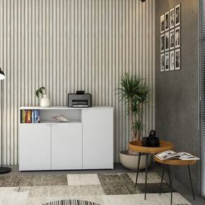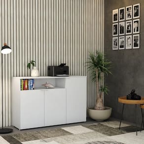 Sobre o ProdutoArmário Aparador C/03 Portas e Nicho 89,5x135x42cm WLAP135 Carvalho / BrancoDescrição do Produto:O Armário Aparador com 03 Portas e Nicho WorkLab é uma peça de mobiliário que combina beleza e funcionalidade, perfeita para complementar qualquer escritório moderno. Com linhas limpas, este aparador oferece amplo espaço interno, enquanto o nicho superior é ideal para guardar itens decorativos ou de fácil acesso. Suas portas possuem dobradiças com amortecedor que garantem um fechamento suave e silencioso, além dos puxadores em alumínio, discretos e funcionais. O Armário Aparador WLAP135 WorkLab é mais do que um simples móvel, é uma peça que valoriza o ambiente de trabalho com sua presença marcante e prá linha WorkLab combina funcionalidade, design contemporâneo e durabilidade para criar um ambiente de trabalho eficiente e inspirador. Com uma ampla variedade de peças versáteis, a WorkLab oferece soluções completas para escritórios, home offices e espaços corporativos. Explore os principais componentes dessa linha e ache a escolha certa para quem busca qualidade, design e funcionalidade em móveis de escritório. Transforme seu espaço de trabalho com a elegância e praticidade da linha Inclusos:1 Armário AparadorDimensões dos Produtos:Armário Aparador C/03 Portas e Nicho 89,5x135x42cm WLAP135 Carvalho / Branco: 135 x 42 x 89,5 cmInformações Logísticas (Comp. X Prof. X Alt.) 156 x 48 x 13,5 cm - Peso: 43,184 KgPeso Total: 43,184 KgObservações:Não acompanha acessórios decorativos. Imagens meramente ilustrativas.Informações Técnicas / Características:- Cor do Produto: Carvalho / Branco- Cor do Predominante: Marrom Claro- Marca: Compace- Modelo: WLAP135- Linha: WorkLab- Material: Mdp - Acabamento: Perffect Acetinado- Escala de Brilho: Fosco- Fita de Borda: Pvc- Possui Portas: 3- Tipo de Porta: Bater- Tipo da Dobradiça: Metálica C/Amortecedor- Possui Gavetas: Não - Possui Chave: Não - Material do Puxador: Alumínio- Possui Prateleiras: 3- Peso Máximo por Prateleira: 10kg - Pés Niveladores: Sim - Acabamento Estrutura: BP- Formato: Retangular- Possui Nicho: 1 - Suporta Até (kg): 70kg- Comprimento: 135cm- Profundidade: 42cm- Altura: 89,5cm - Peso Lí.: 42,125Kg- Recomendações de Uso, Manutenção e Limpeza: Para a limpeza, utilize flanela seca ou pano macio levemente umedecido em água. Utilize um pano seco em seguida. Evite com produtos químicos (solventes, thinner, acetona, etc) e não utilize nenhum tipo de esponja de aço.- Necessita de Montagem: Sim / Acompanha Manual de Montagem- Complexidade da Montagem: Alta: deve ser montado por um montador especializado.- Garantia: 6 meses Quantidade de volumes: 1 | Altura: 89,5 | Comprimento: 135 | Marca: Compace | Modelo: WLAP135 | Necessita montagem: Sim | Quantidade máxima de pedido: 1 | Largura: 42 | Profundidade: 42 Cor: Branco Chess
