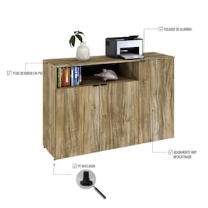 Sobre o ProdutoArmário Aparador C/03 Portas e Nicho 89,5x135x42cm WLAP135 Carvalho / BrancoDescrição do Produto:O Armário Aparador com 03 Portas e Nicho WorkLab é uma peça de mobiliário que combina beleza e funcionalidade, perfeita para complementar qualquer escritório moderno. Com linhas limpas, este aparador oferece amplo espaço interno, enquanto o nicho superior é ideal para guardar itens decorativos ou de fácil acesso. Suas portas possuem dobradiças com amortecedor que garantem um fechamento suave e silencioso, além dos puxadores em alumínio, discretos e funcionais. O Armário Aparador WLAP135 WorkLab é mais do que um simples móvel, é uma peça que valoriza o ambiente de trabalho com sua presença marcante e prá linha WorkLab combina funcionalidade, design contemporâneo e durabilidade para criar um ambiente de trabalho eficiente e inspirador. Com uma ampla variedade de peças versáteis, a WorkLab oferece soluções completas para escritórios, home offices e espaços corporativos. Explore os principais componentes dessa linha e ache a escolha certa para quem busca qualidade, design e funcionalidade em móveis de escritório. Transforme seu espaço de trabalho com a elegância e praticidade da linha Inclusos:1 Armário AparadorDimensões dos Produtos:Armário Aparador C/03 Portas e Nicho 89,5x135x42cm WLAP135 Carvalho / Branco: 135 x 42 x 89,5 cmInformações Logísticas (Comp. X Prof. X Alt.) 156 x 48 x 13,5 cm - Peso: 43,184 KgPeso Total: 43,184 KgObservações:Não acompanha acessórios decorativos. Imagens meramente ilustrativas.Informações Técnicas / Características:- Cor do Produto: Carvalho / Branco- Cor do Predominante: Marrom Claro- Marca: Compace- Modelo: WLAP135- Linha: WorkLab- Material: Mdp - Acabamento: Perffect Acetinado- Escala de Brilho: Fosco- Fita de Borda: Pvc- Possui Portas: 3- Tipo de Porta: Bater- Tipo da Dobradiça: Metálica C/Amortecedor- Possui Gavetas: Não - Possui Chave: Não - Material do Puxador: Alumínio- Possui Prateleiras: 3- Peso Máximo por Prateleira: 10kg - Pés Niveladores: Sim - Acabamento Estrutura: BP- Formato: Retangular- Possui Nicho: 1 - Suporta Até (kg): 70kg- Comprimento: 135cm- Profundidade: 42cm- Altura: 89,5cm - Peso Lí.: 42,125Kg- Recomendações de Uso, Manutenção e Limpeza: Para a limpeza, utilize flanela seca ou pano macio levemente umedecido em água. Utilize um pano seco em seguida. Evite com produtos químicos (solventes, thinner, acetona, etc) e não utilize nenhum tipo de esponja de aço.- Necessita de Montagem: Sim / Acompanha Manual de Montagem- Complexidade da Montagem: Alta: deve ser montado por um montador especializado.- Garantia: 6 meses Quantidade de volumes: 1 | Altura: 89,5 | Comprimento: 135 | Marca: Compace | Modelo: WLAP135 | Necessita montagem: Sim | Quantidade máxima de pedido: 1 | Largura: 42 | Profundidade: 42 Cor: Carvalho / Preto