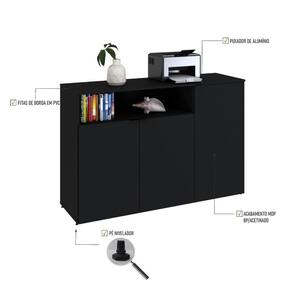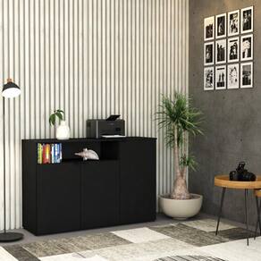 Armário Aparador C/03 Portas E Nicho 89,5x135x42cm Wlap135 Preto ônix Preto ônix
