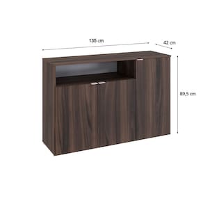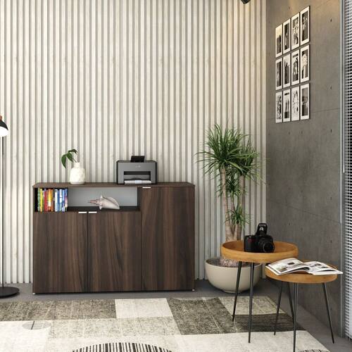 O Armário Aparador com 03 Portas e Nicho WorkLab é uma peça de mobiliário que combina beleza e funcionalidade, perfeita para complementar qualquer escritório moderno. Com linhas limpas, este aparador oferece amplo espaço interno, enquanto o nicho superior é ideal para guardar itens decorativos ou de fácil acesso. Suas portas possuem dobradiças com amortecedor que garantem um fechamento suave e silencioso, além dos puxadores em alumínio, discretos e funcionais. O Armário Aparador WLAP135 WorkLab é mais do que um simples móvel, é uma peça que valoriza o ambiente de trabalho com sua presença marcante e prática. Acabamento da Porta: BP Acetinado Acabamento da Prateleira: BP Acetinado Ambiente Principal: Escritório Complexidade da Montagem: Alta: deve ser montado por um montador especializado Cor: Nogal /Branco Cor do Produto: Nogal /Branco Cor Interna: Nogal Escala de Brilho: Fosco Escala de Brilho da Porta: Fosco Escala de Brilho da Prateleira: Fosco Itens Inclusos: 1 Armário Aparador Manual de Montagem e Instalação: https://cdn2.madeiramadeira.com.br/atributo/compace-dalex/2357596-1708-17267601591654.pdf Material da Porta: MDP Material da Prateleira: MDP Material do Puxador da Porta: Alumínio Material Principal: MDP Necessita Montagem: Sim Origem do Produto: Nacional Peso: 42,125 kg Peso Máximo por Prateleira: 10 kg Possui Espelho: Não Possui Nicho: Sim Possui Pés: Não Possui Portas: 01 Possui Prateleiras: 03 Recomendações de Uso, Manutenção e Limpeza: Para a limpeza, utilize flanela seca ou pano macio levemente umedecido em água. Utilize um pano seco em seguida. Evite contato com produtos químicos (solventes, thinner, acetona, etc) e não utilize nenhum tipo de esponja de aço. Sapatas Niveladoras: Sim Sistema de Montagem: Parafuso, Cavilha, Minifix, Dobradiça, Prego e sapata niveladora Suporta Até (kg): 70 kg Tipo de Dobradiça/Corrediça da Porta: Metálica Tipo de Puxador da Porta: Externo