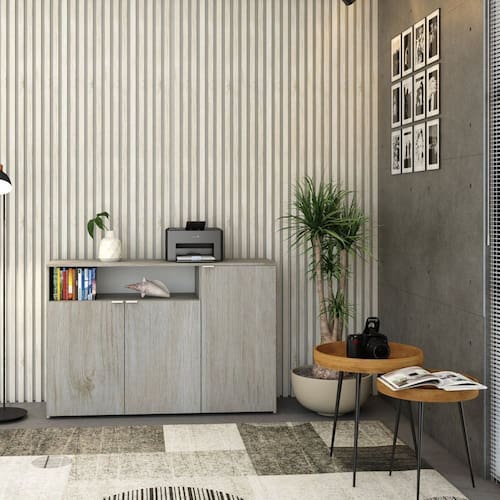 O Armário Aparador com 03 Portas e Nicho WorkLab é uma peça de mobiliário que combina beleza e funcionalidade, perfeita para complementar qualquer escritório moderno. Com linhas limpas, este aparador oferece amplo espaço interno, enquanto o nicho superior é ideal para guardar itens decorativos ou de fácil acesso. Suas portas possuem dobradiças com amortecedor que garantem um fechamento suave e silencioso, além dos puxadores em alumínio, discretos e funcionais. O Armário Aparador WLAP135 WorkLab é mais do que um simples móvel, é uma peça que valoriza o ambiente de trabalho com sua presença marcante e prática.
