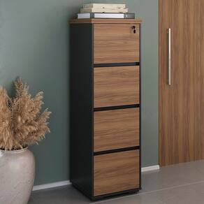 Saiba mais sobre o Armário Arquivo com Chave 4 Gavetas Corp A06 Nogal/Preto, da Mpozenato, e descubra a solução ideal para quem deseja uma organização impecável, seja no escritório ou home office.