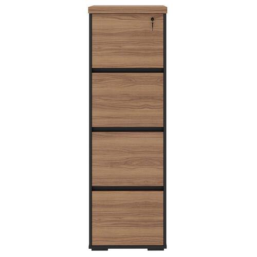 Saiba mais sobre o Armário Arquivo com Chave 4 Gavetas Corp A06 Nogal/Preto, da Mpozenato, e descubra a solução ideal para quem deseja uma organização impecável, seja no escritório ou home office.