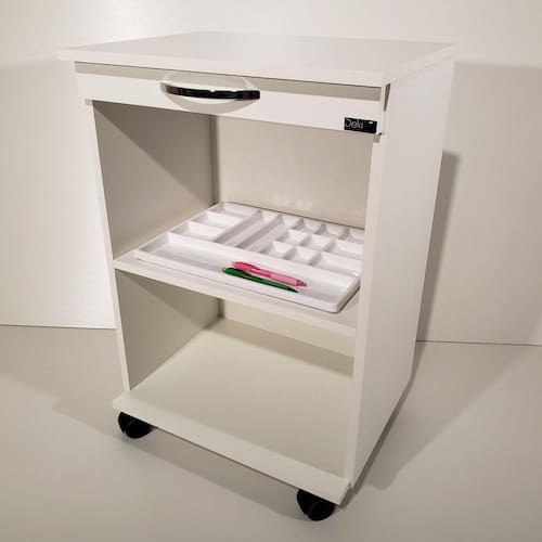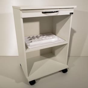 - Mesa Auxiliar Lumen com 2 nichos, é perfeita para clínicas ou salões de beleza;