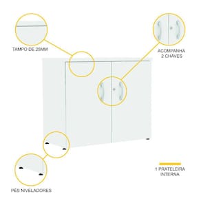 - Armário baixo confeccionado em madeira (MDP) com 2 portas.