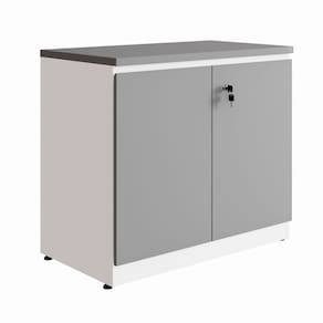 Armário Baixo F5 Office com 2 portas, uma com chave, ideal para organizar e guardar documentos com segurança. Compacto, moderno e combina com a linha F5.