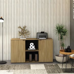 Armário Baixo C/02 Portas E Nicho 75x135x42cm Wlab135 Vermont Oak / Preto Vermont Oak / Preto Sobre o ProdutoArmário Baixo C/02 Portas e Nicho 75x135x42cm WLAB135 Vermont Oak / BrancoDescrição do Produto:O Armário Baixo com 02 Portas e Nicho WLAB135 WorkLab é uma solução de armazenamento que combina praticidade e design moderno. Ideal para ambientes que precisam otimizar o espaço sem abrir mão do estilo. Possui um espaço interno generoso, ideal para organizar documentos, materiais de escritório ou itens pessoais de forma discreta. Suas portas possuem dobradiças com amortecedor que garantem um fechamento suave e silencioso, além dos puxadores em alumínio, discretos e funcionais. Compacto, mas surpreendentemente espaçoso, o Armário Baixo WLAB135 WorkLab é a escolha ideal para quem busca maximizar a organização sem comprometer o linha WorkLab combina funcionalidade, design contemporâneo e durabilidade para criar um ambiente de trabalho eficiente e inspirador. Com uma ampla variedade de peças versáteis, a WorkLab oferece soluções completas para escritórios, home offices e espaços corporativos. Explore os principais componentes dessa linha e ache a escolha certa para quem busca qualidade, design e funcionalidade em móveis de escritório. Transforme seu espaço de trabalho com a elegância e praticidade da linha Inclusos:1 Armário Baixo c/NichoDimensões dos Produtos:Armário Baixo C/02 Portas e Nicho 75x135x42cm WLAB135 Vermont Oak / Branco: 135 x 42 x 75 cmInformações Logísticas (Comp. X Prof. X Alt.) 147 x 48 x 10 cm - Peso: 36,535 KgPeso Total: 36,535 KgObservações:Não acompanha acessórios decorativos. Imagens meramente ilustrativas.Informações Técnicas / Características:- Cor do Produto: Vermont Oak / Branco- Cor do Predominante: Marrom Claro- Marca: Metalig- Modelo: WLAB135- Linha: WorkLab- Material: Mdp - Acabamento: BP- Escala de Brilho: Fosco- Fita de Borda: Pvc- Possui Portas: 2- Tipo de Porta: Bater- Tipo da Dobradiça: Metálica C/Amortecedor- Possui Gavetas: Não - Possui Chave: Não - Material do Puxador: Alumínio- Possui Prateleiras: 3- Peso Máximo por Prateleira: 10kg - Pés Niveladores: Sim - Acabamento Estrutura: BP- Formato: Retangular- Possui Nicho: 2 - Suporta Até (kg): 70kg- Comprimento: 135cm- Profundidade: 42cm- Altura: 75cm - Peso Lí.: 35,705Kg- Recomendações de Uso, Manutenção e Limpeza: Para a limpeza, utilize flanela seca ou pano macio levemente umedecido em água. Utilize um pano seco em seguida. Evite com produtos químicos (solventes, thinner, acetona, etc) e não utilize nenhum tipo de esponja de aço.- Necessita de Montagem: Sim / Acompanha Manual de Montagem- Complexidade da Montagem: Média: pode ser montado por mais de uma pessoa e/ou necessite de maior conhecimento para montagem.- Garantia: 6 meses Quantidade de volumes: 1 | Altura: 75 | Comprimento: 135 | Marca: Compace | Modelo: WLAB135 | Necessita montagem: Sim | Quantidade máxima de pedido: 1 | Largura: 42 | Profundidade: 42 Cor: Vermont Oak / Preto