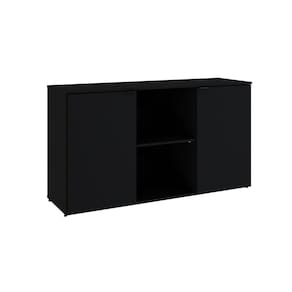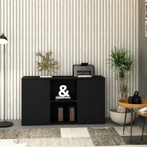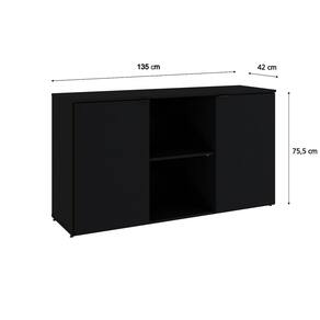Armário Baixo com 2 Portas e Nicho 75x135x42cm Preto Onix