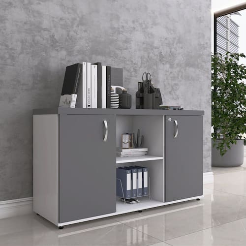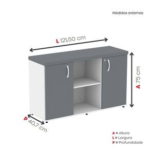 Ideal para escritórios, salas de reunião ou home office. Acabamento da Porta: BP Acabamento da Prateleira: BP Acabamento dos Pés: Polipropileno Altura dos Pés: 3 cm Ambiente Principal: Escritório Armário Suspenso: Não codigo_ean: 7900288220004 Complexidade da Montagem: Média: pode ser montado por mais de uma pessoa e/ou necessite de maior conhecimento para montagem Cor: Branco/Grafito Cor do Produto: Branco/Grafito Cor Interna: Branco Escala de Brilho: Semi-Fosco Escala de Brilho da Porta: Semi-Fosco Escala de Brilho da Prateleira: Semi-Fosco Formato do Armário: Retangular Itens Inclusos: 1 Armário e Kit Ferragens Linha ou Coleção: Credenza Localização do Nicho: Nicho Lateral Manual de Montagem e Instalação: https://product-hub-prd.madeiramadeira.com.br/137818713/documents/adb71fdc-cc1a-419f-9cac-aeb248e32ce33174153387017567538831072.pdf Marca: Pandin Móveis Material da Porta: MDP Material da Prateleira: MDP Material do Puxador da Porta: MDP Material dos Pés: Polipropileno Material Principal: MDP Necessita Montagem: Sim Orientação do Armário: Horizontal Origem do Produto: Nacional Pés Reguláveis: Sim Peso: 36,406 kg Peso Máximo por Prateleira: 15 kg Possui Espelho: Não Possui Mesa Retrátil: Não Possui Nicho: Sim Possui Pés: 04 Possui Portas: 02 Possui Prateleiras: 03 Quantidade de Armários: 1 Recomendações de Uso, Manutenção e Limpeza: Utilizar um pano levemente umedecido com água, para finalizar utilizar um pano seco. Sapatas Niveladoras: Sim Sistema de Montagem: parafuso Suporta Até (kg): 45 kg Tamanho do Armário: Baixo (Até 90cm) Tipo de Armário: Semi-Fechado Tipo de Dobradiça/Corrediça da Porta: Aço Tipo de Puxador da Porta: Externo Marca: Não Informado