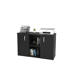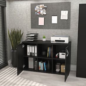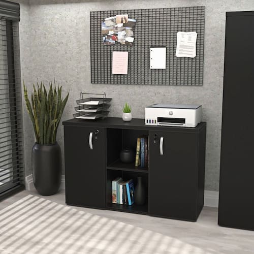 Armário Baixo Credenza com Chave 120cm X 42cm Escritório Preto