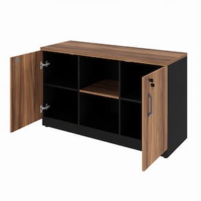 Armário Baixo Credenza 40mm 2 Portas Express - Nogal/Preto