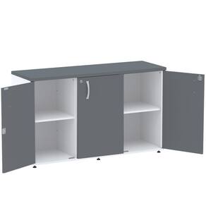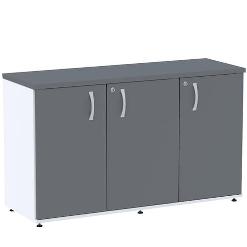Armário Baixo Credenza PE25 Pandin 121,50 cm (largura) em MDP Cor Branco e Grafito com Três Portas